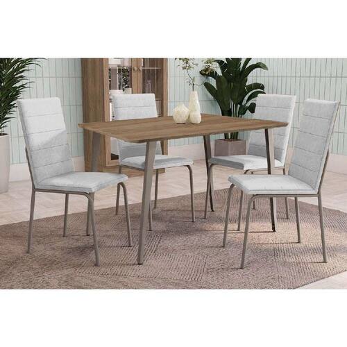 Sala de Jantar Completa Iguaçu c/ Tampo de Madeira 90cm e 4 Cadeiras Amsterdã Niquel/Branco 106 - Kappesberg Abaixo segue os produtos do KIT: Sala de Jantar Completa Iguaçu c/ Tampo de Madeira 90cm e 4 Cadeiras Amsterdã Niquel/Branco 106 - Kappesberg