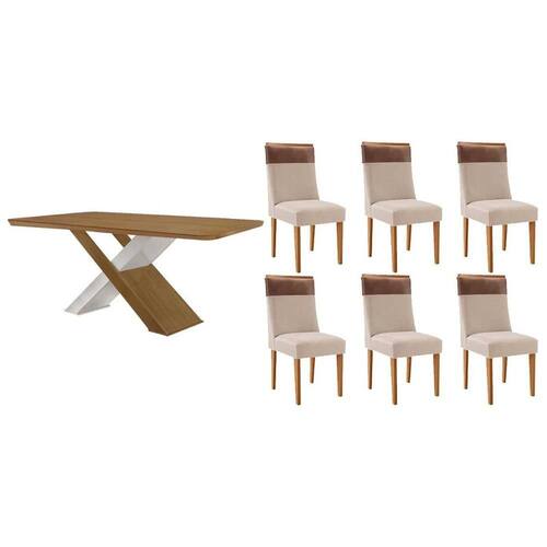 Sala de Jantar Completa Imperatriz c/ Tampo Madeirado Canto Curvo 180x90cm e 6 Cadeiras Jaspe Naturale/Off White - Suede Creme - Rufato Abaixo segue os produtos do KIT: Sala de Jantar Completa Imperatriz c/ Tampo Madeirado Canto Curvo 180x90cm e 6 Cadeiras Jaspe Naturale/Off White - Suede Creme - Rufato