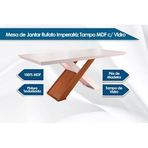 Mesa de Sala Jantar Imperatriz c/ Tampo 180x90cm Madeirado Vidro Canto Curvo - Imbuia/Grafite - Rufato