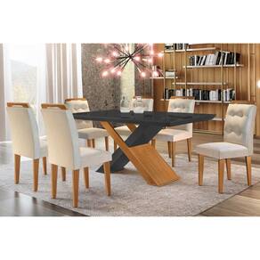 Sala de Jantar Completa Imperatriz Tampo Madeirado c/ Vidro Curvo 180x90 e 6 Cadeiras Imperatriz Imbuia/Grafite - Suede Creme - Rufato Abaixo segue os produtos do KIT: Sala de Jantar Completa Imperatriz Tampo Madeirado c/ Vidro Curvo 180x90 e 6 Cadeiras Imperatriz Imbuia/Grafite - Suede Creme - Rufato