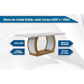Mesa de Sala Jantar Jade c/ Tampo 180x90cm Madeirado Vidro Canto Curvo - Imbuia/Off White - Rufato