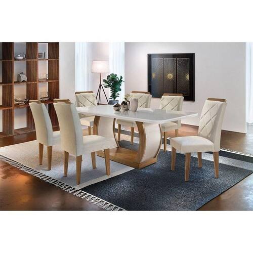 Sala de Jantar Completa Jade Tampo Madeirado c/ Vidro Canto Curvo 180x90cm e 6 Cadeiras Melissa Capuccino/Suede Creme - Rufato Abaixo segue os produtos do KIT: Sala de Jantar Completa Jade Tampo Madeirado c/ Vidro Canto Curvo 180x90cm e 6 Cadeiras Melissa Capuccino/Suede Creme - Rufato