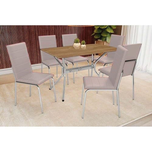 Sala de Jantar Completa Loire c/ Tampo de Madeira 160cm e 6 Cadeiras Amsterdã Cromada/Nude 16 - Kappesberg