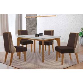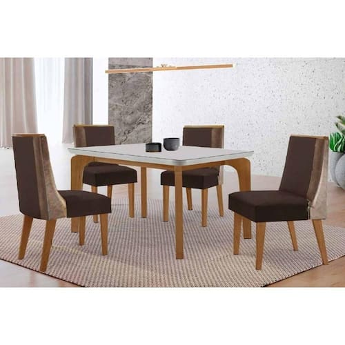 Sala de Jantar Completa Londrina c/ Tampo Madeirado c/ Vidro Canto Curvo 120x80cm 4 Cadeiras Tilia Naturale/Off White - Suede Marrom - Rufato Abaixo segue os produtos do KIT: Sala de Jantar Completa Londrina c/ Tampo Madeirado c/ Vidro Canto Curvo 120x80cm 4 Cadeiras Tilia Naturale/Off White - Suede Marrom - Rufato
