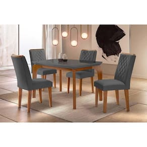 Sala de Jantar Completa Londrina c/ Tampo Madeirado c/ Vidro Canto Curvo 120x80cm e 4 cadeiras Jade Imbuia/Grafite - Linho Grafite - Rufato Abaixo segue os produtos do KIT: Sala de Jantar Completa Londrina c/ Tampo Madeirado c/ Vidro Canto Curvo 120x80cm e 4 cadeiras Jade Imbuia/Grafite - Linho Grafite - Rufato