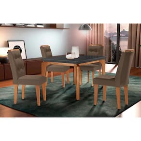 Sala de Jantar Completa Londrina c/ Tampo Madeirado c/ Vidro Canto Reto 120x80cm e 4 cadeiras Imperatriz Imbuia/Grafite - Suede Capuccino - Rufato