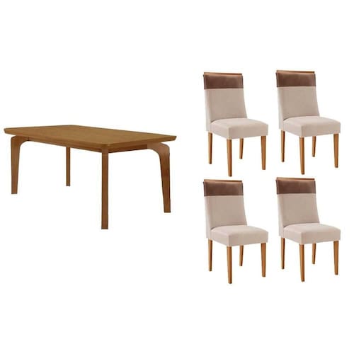 Sala de Jantar Completa Londrina c/ Tampo Madeirado Canto Curvo 120x80cm e 4 Cadeiras Jaspe Naturale - Suede Creme - Rufato Abaixo segue os produtos do KIT: Sala de Jantar Completa Londrina c/ Tampo Madeirado Canto Curvo 120x80cm e 4 Cadeiras Jaspe Naturale - Suede Creme - Rufato