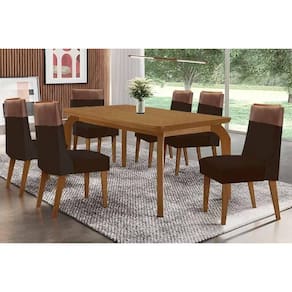 Sala de Jantar Completa Londrina c/ Tampo Madeirado Canto Curvo 180x90cm e 6 Cadeiras Jaspe Naturale - Suede Marrom - Rufato Abaixo segue os produtos do KIT: Sala de Jantar Completa Londrina c/ Tampo Madeirado Canto Curvo 180x90cm e 6 Cadeiras Jaspe Naturale - Suede Marrom - Rufato