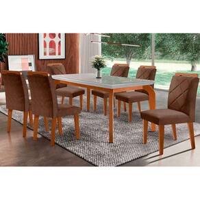 Sala de Jantar Completa Londrina Tampo Madeirado c/ Vidro Curvo 120x80 e 4 Cadeiras Melissa Imbuia/Suede Capuccino - Rufato Abaixo segue os produtos do KIT: Sala de Jantar Completa Londrina Tampo Madeirado c/ Vidro Curvo 120x80 e 4 Cadeiras Melissa Imbuia/Suede Capuccino - Rufato
