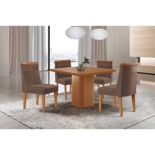 Sala de Jantar Completa Maldivas c/ Tampo Madeirado Canto Curvo 90x90cm e 4 Cadeiras Jaspe Naturale - Suede Marrom - Rufato Abaixo segue os produtos do KIT: Sala de Jantar Completa Maldivas c/ Tampo Madeirado Canto Curvo 90x90cm e 4 Cadeiras Jaspe Naturale - Suede Marrom - Rufato