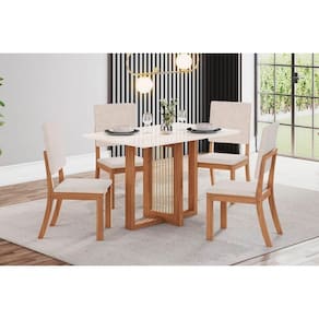Sala de Jantar Completa Natalí c/ Tampo Madeirado Reto s/ Vidro 120x80cm e 4 Cadeiras Milla Nature/Off White - Linho Bege - Henn Abaixo segue os produtos do KIT: Sala de Jantar Completa Natalí c/ Tampo Madeirado Reto s/ Vidro 120x80cm e 4 Cadeiras Milla Nature/Off White - Linho Bege - Henn