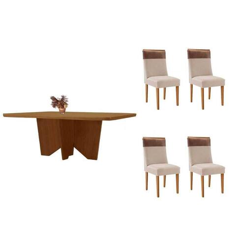 Cadeira Sala de Jantar Jaspe Kit 2 Un Naturalle/Suede Creme/Corano Capuccino - Rufato