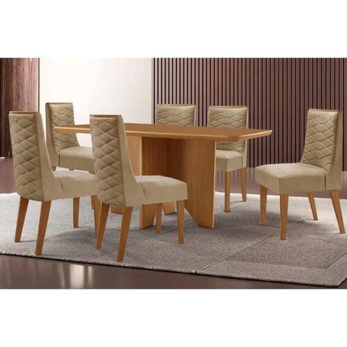 Sala de Jantar Completa Nevada c/ Tampo Madeirado Canto Curvo 180x90cm e 6 Cadeiras Dafne Naturale - Linho Bege - Rufato Abaixo segue os produtos do KIT: Sala de Jantar Completa Nevada c/ Tampo Madeirado Canto Curvo 180x90cm e 6 Cadeiras Dafne Naturale - Linho Bege - Rufato