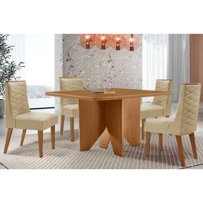 Sala de Jantar Completa Nevada c/ Tampo Madeirado Canto Curvo 90x90cm e 4 Cadeiras Dafne Naturale - Suede Creme - Rufato Abaixo segue os produtos do KIT: Sala de Jantar Completa Nevada c/ Tampo Madeirado Canto Curvo 90x90cm e 4 Cadeiras Dafne Naturale - Suede Creme - Rufato