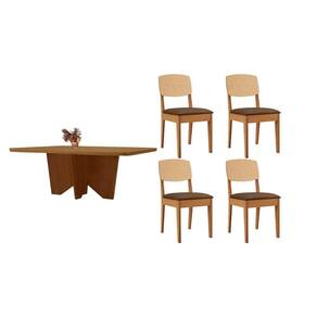 Sala Jantar Mesa Nevada Tampo Curvo 120cm+4 Cadeiras Havana Naturale - Suede Marrom - Rufato