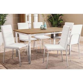 Sala de Jantar Completa Reno c/ Tampo de Madeira 160cm e 6 Cadeiras Amsterdã Cromada/Branco 106 - Kappesberg Abaixo segue os produtos do KIT: Sala de Jantar Completa Reno c/ Tampo de Madeira 160cm e 6 Cadeiras Amsterdã Cromada/Branco 106 - Kappesberg