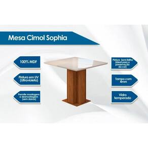 Mesa de Sala Jantar Sophia c/ Tampo Madeirado c/ Vidro 95X95cm Nature/Off White - Cimol
