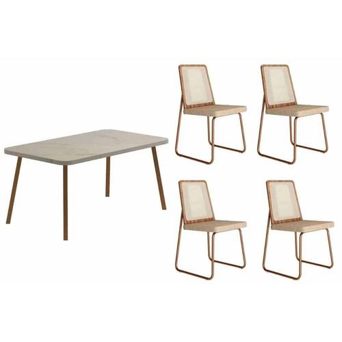 Sala Jantar Mesa Stellar 1598 Aço c/ Tampo Madeirado 120x80cm e 4 Cadeiras Wood Rose/Petra - Rose/Areia/Freijo/Tela Sintetica - Carraro