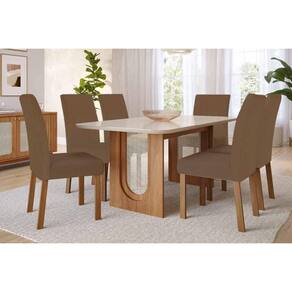 Sala de Jantar Completa Valentina Tampo Madeirado c/ Vidro 180x90cm e 6 Cadeiras Maia Cinamomo/Off White - Suede Mascavo Chocolate - Cimol
