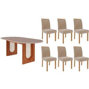 Sala de Jantar Completa Valentina Tampo Madeirado Oval c/ Vidro 210x100cm e 6 Cadeiras Juliana Cinamomo/Off White - Carvalho/Suede Nude Bege - Cimol Abaixo segue os produtos do KIT: Sala de Jantar Completa Valentina Tampo Madeirado Oval c/ Vidro 210x100cm e 6 Cadeiras Juliana Cinamomo/Off White - Carvalho/Suede Nude Bege - Cimol