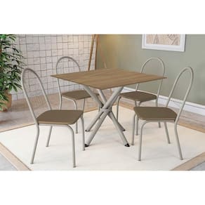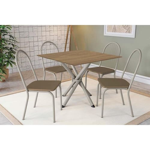 Sala de Jantar Completa Volga c/ Tampo de Madeira 90cm e 4 Cadeiras Noruega Niquel/Nogueira - Courano Capuccino - Kappesberg Abaixo segue os produtos do KIT: Sala de Jantar Completa Volga c/ Tampo de Madeira 90cm e 4 Cadeiras Noruega Niquel/Nogueira - Courano Capuccino - Kappesberg