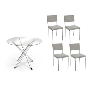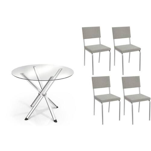 Conjunto: Mesa De Cozinha Volga C/ Tampo De Vidro 95cm E 4 Cadeiras Zaria Cromada - Boucle Cinza - Kappesberg
