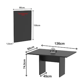 Dimensões do Produto Montado: Mesa - Altura: 74,5cm | Largura: 136cm | Profundidade: 90cm Painel - Altura: 136cm | Largura: 90cm | Profundidade: 1,5cm *Devido às variações de tamanho dos televisores no mercado, sugerimos que verifique as medidas da sua TV e compare com as do painel antes de efetuar a compra. *Você pode consultar as medidas detalhadas na imagem técnica do produto.