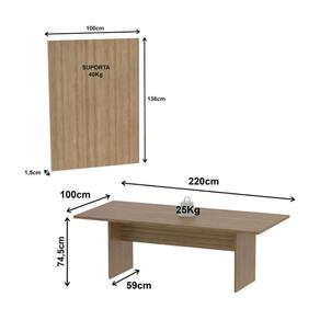 Dimensões do Produto Montado: Mesa - Altura: 74,5cm | Largura: 220cm | Profundidade: 100cm Painel - Altura: 136cm | Largura: 100cm | Profundidade: 1,5cm *Devido às variações de tamanho dos televisores no mercado, sugerimos que verifique as medidas da sua TV e compare com as do painel antes de efetuar a compra. *Você pode consultar as medidas detalhadas na imagem técnica do produto.