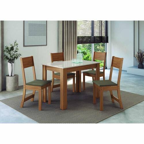 Conjunto Mesa De Jantar 108cm Com 4 Cadeiras Multimóveis CR50204 Cacau Freijó/off White/cacau Transforme sua sala de jantar em um ambiente acolhedor e sofisticado com o Conjunto Mesa de Jantar 108cm com 4 Cadeiras Multimóveis CR50204. Criado para unir beleza, conforto e durabilidade, ele é a escolha perfeita para tornar cada refeição ainda mais especial. Diferenciais: - Mesa produzida em MDP com pintura UV: resistência e facilidade na limpeza. - Cadeiras em MDF com travas reforçadas. - Assento estofado macio e confortável, revestido em tecido (gorgurinho na opção Branco/Preto e suede na opção Freijó/Off White/Cacau). - Sapatas plásticas antiumidade que protegem contra desgaste e prolongam a vida útil. - A mesa suporta até 40kg distribuídos sobre o tampo, e as cadeiras suportam até 120kg em cada.