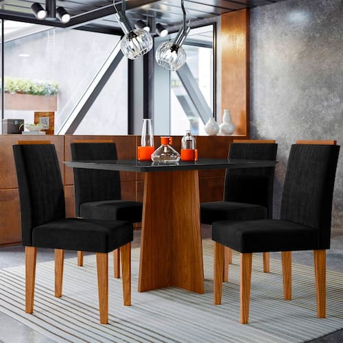 Conjunto Mesa de Jantar 1,20m Anitta - Tampo em Mdf com Vidro e 4 Cadeiras Ana Ypê/Preto/Ja03 - New Ceval