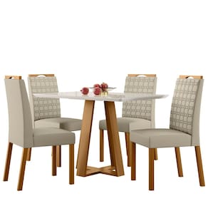 Conjunto Mesa de Jantar 1,20m Lectus - Tampo com Vidro e 4 cadeiras Mariah Ypê/Off White/Ja01 - New Ceval