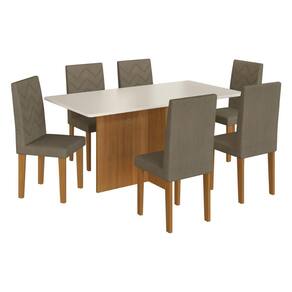Conjunto Mesa de Jantar 170cm com 6 Cadeiras Multimóveis CR50209 - Freijó | Off White