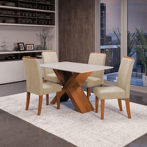 O Conjunto de Mesa com 4 Cadeiras Grécia é ideal para deixar sua sala de jantar ou cozinha mais elegante e aconchegante. A mesa conta com base em MDF e tampo com vidro temperado, garantindo resistência e sofisticação ao ambiente. As cadeiras apresentam encosto com espaldar e assento acolchoado, revestidos com tecido Veluplus de toque macio e excelente durabilidade. Além disso, sua estrutura é robusta e fácil de limpar, oferecendo praticidade no dia a dia.