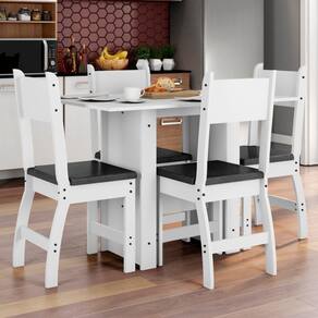 Conjunto Mesa De Jantar 4 Lugares Milano Branco Com Preto