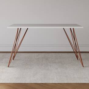 Conjunto Mesa De Jantar 6 Cadeiras Katrina Cobre Trama Premium Cobre E Branco 150 Cm A sua cozinha ou sala de jantar estará completa com esse maravilhoso conjunto para realizar as grandes as refeições e reuniões em família. E se você busca móveis com design contemporâneo, acompanhado de muita qualidade material e combinação de cores clássica, o modelo Trama é para você!
