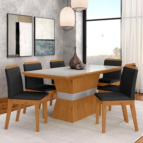 Conjunto Mesa De Jantar 6 Cadeiras Nairóbi Cinam/off Whi/preto - Ma