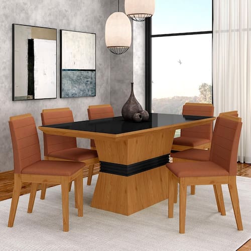 Conjunto Mesa De Jantar 6 Cadeiras Nairóbi Cinamo/preto/terracota - Ma - Marrom