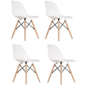 Acompanha kit com 4 cadeiras Eames com base em madeira, um design clássico da década de 60, confortável e estilo, combina com vários estilos de decoração e está sempre em alta! A combinação perfeita para quem gosta do estilo industrial de decoração e não abre mão de design e conforto. Altura do Conjunto: 82 cm Ambiente: null Ambiente Principal: Sala de Jantar codigo_ean: 7908308759206 Cor: Snow Informação Complementar: 1x Conjunto de 4 Cadeiras Pp Base Madeira Eames Dsw-m Branco Largura: 46 Altura: 82 Peso: 3,4 Profundidade: 52 Necessita Montagem: Sim