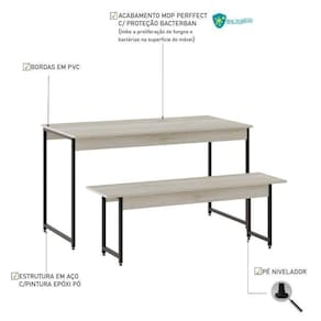 O conjunto de mesa com 01 banco da linha Active é perfeito para sua sala de jantar ou de lazer, levando o estilo de decoração industrial e contemporâneo à sua casa. Fabricado com estrutura em tubos de aço com pintura epóxi e MDP Perffect com Microban que inibe a proliferação de fungos e bactérias, além das fitas em PVC, conferindo muito mais qualidade ao seu móvel.