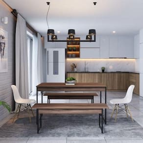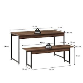 1x Conjunto Mesa de Jantar com 2 Bancos Estilo Industrial Active Nogal Necessita Montagem: Sim