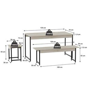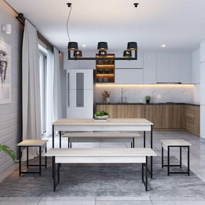 O conjunto de mesa com 02 bancos e 02 Banquetas da linha Active é perfeito para sua sala de jantar ou de lazer, levando o estilo de decoração industrial e contemporâneo a sua casa. Fabricado com estrutura em tubos de aço com pintura epóxi e MDP Perffect com Microban que inibe a proliferação de fungos e bactérias, além das fitas em PVC, conferindo muito mais qualidade ao seu móvel. Medida da Mesa (A x L x P): 74 x 135 x 70cm Peso da Mesa: 14 kg Mesa suporta até: 90.0000 Acabamento da Cadeira/Banco: Acetinado Acabamento da Mesa: Acetinado Altura do Conjunto: 74 Ambiente Principal: Sala de Jantar Cadeira/Banco Estofada: Não Cadeira/Banco estofada: Não Cadeira/Banco suporta até: 200.0000 codigo_ean: 7909903063644 Complexidade da Montagem: Baixa: pode ser montado por uma pessoa sozinha Cor: Snow Cor do Produto: Snow Escala de Brilho: Fosco Espessura do Tampo: 15 mm Estrutura do Assento: MDP Itens Inclusos: 1 Mesa, 2 Bancos, 2 Banquetas, Kit Ferragens e Manual de Montagem Linha ou Coleção: Active Manual de Montagem e Instalação: https://product-hub-prd.madeiramadeira.com.br/734187/documents/3013e34a-f45d-4b9d-8814-565e4fdba70bIVEYESCASAMANUALATUALIZADO.pdf Manutenção: Para a limpeza, utilize flanela seca ou pano macio levemente umedecido em água. Utilize um pano seco em seguida. Evite contato com produtos químicos (solventes, thinner, acetona, etc) e não utilize nenhum tipo de esponja de aço. Material da Base da Mesa: Aço Material da Estrutura da Cadeira: Aço Material do Tampo: MDP Medida da Cadeira/Banco (A x L x P): Banco: 43 x 129 x 36cm | Banqueta: 38 x 36 x 43cm Medida do Tampo (L x C x E): 70 x 135 x 1,5cm Mesa Extensível: Não Necessita Montagem: Sim Origem do Produto: Nacional Peso da Cadeira/Banco: 20,62 kg Possui Apoio para Braços: Não Possui Apoio Para os Pés: Não Quantidade de Cadeiras: 4 Quantidade de Lugares: 06 Recomendações de Uso, Manutenção e Limpeza: Para a limpeza, utilize flanela seca ou pano macio levemente umedecido em água. Utilize um pano seco em seguida. Evite contato com produtos químicos (solventes, thinner, acetona, etc) e não utilize nenhum tipo de esponja de aço. Sistema de Montagem: Bucha, Parafuso, Pé Nivelador, Pé Tubular Ean: 7909903063644