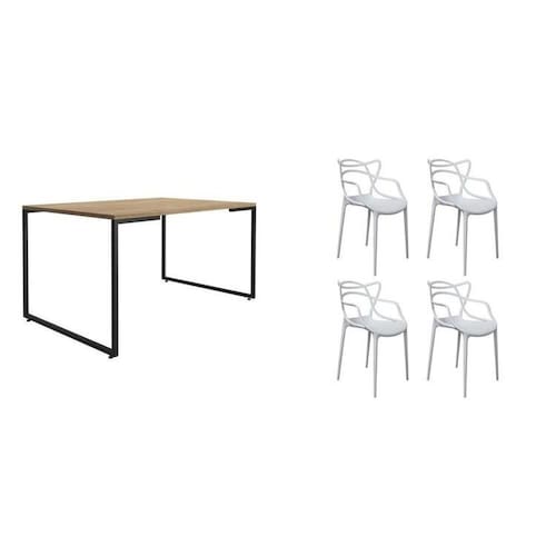 A Cadeira Allegra PP é composta em polipropileno, encosto para as costas em formato arredondado com espaços vazados formando uma peça única. Possui formas consagradas produzidas em releituras de alta qualidade, que ficam bem em qualquer ambiente. Possui Portas: Não Altura do Conjunto: 83 cm Ambiente: null Ambiente Principal: Sala de Jantar Cor: Marrom/Branco Informação Complementar: 1x Mesa de Jantar Industrial Aço Tampo em Bp Porto Marrom/Preto Largura: 135 cm Altura: 75 cm Peso: 23,58 kg Profundidade: 90 cm Necessita Montagem: Sim