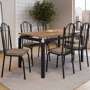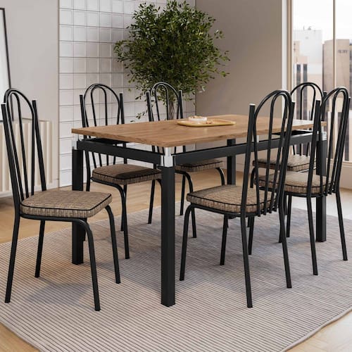 O conjunto de Mesa de Jantar Malva com 6 Cadeiras Europa além de trazer funcionalidade, um design único, é a escolha ideal para partilhar suas refeições em família.