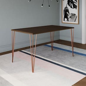 Conjunto Mesa De Jantar Elen Com 6 Cadeiras Katrina Base Cobre E Tampo Amêndoa 150cm - Cor: Marrom