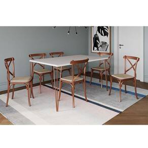 Conjunto Mesa De Jantar Elen Com 6 Cadeiras Katrina Base Cobre E Tampo Branco 150cm - Cor: Branco