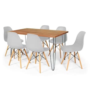 Conjunto Mesa De Jantar Hairpin 130x80 Natural Com 6 Cadeiras Eames Eiffel - Cinza
