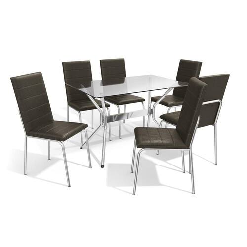 O Conjunto Sala de Jantar Linha Crome da Kappesberg combina elegância, conforto e qualidade, o conjunto ideal para horas de lazer! É composto por 1 mesa com Tampo de Vidro Temperado, 1 base em Metal Cromado e 6 cadeiras com estrutura de Metal Cromado, garantindo um conjunto completo e moderno. As 6 cadeiras possuem assento com espuma de alta densidade, além disso, são 100% automatizados e acabado com 100% de polimento, proporcionando um alto padrão de qualidade, conforto e durabilidade. Seu estofamento na cor Marrom, confere um visual elegante e moderno, tornando-o uma ótima escolha para qualquer sala de jantar. Aproveite a qualidade que o Conjunto da Kappesberg oferece!