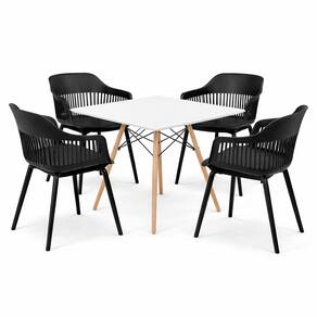 Conjunto Mesa de Jantar Quadrada 90cm Branco com 4 Cadeiras Marcela – Design Moderno e Sofisticado, Preto - Branco | Preto