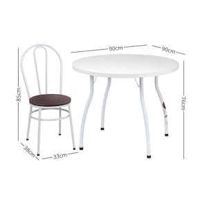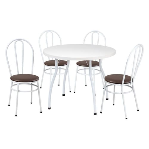 Conjunto Mesa De Jantar Redonda 90cm Com 4 Cadeiras Multimóveis Cr50135 Branco Marrom Renove seu ambiente com o Conjunto Mesa de Jantar Redonda 90cm com 4 Cadeiras Multimóveis CR50135! Com estrutura em aço carbono de alta durabilidade com pintura epóxi, oferece resistência para o dia a dia e sofisticação para o seu lar. O tampo redondo em MDP com acabamento em BP suporta até 30kg, perfeito para refeições em família ou encontros com amigos. As 4 cadeiras, com assento estofado em espuma D16 e revestimento de material sintético, garantem conforto e beleza, suportando até 80kg cada. Conteúdo da Embalagem: 1 uma Mesa 4 quatro Cadeiras