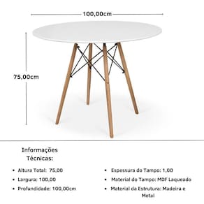 A Mesa Eiffel Redonda, com seus 100cm de diâmetro, traz uma aura de modernidade e sofisticação para sua sala de jantar ou cozinha. Seja para reuniões familiares, jantares íntimos ou até mesmo para momentos de trabalho em casa, este conjunto é a escolha perfeita. A Mesa possui seu tampo feito em MDF Laqueado e a sua base madeira e metal, materiais resistentes que garantem alta durabilidade ao produto.